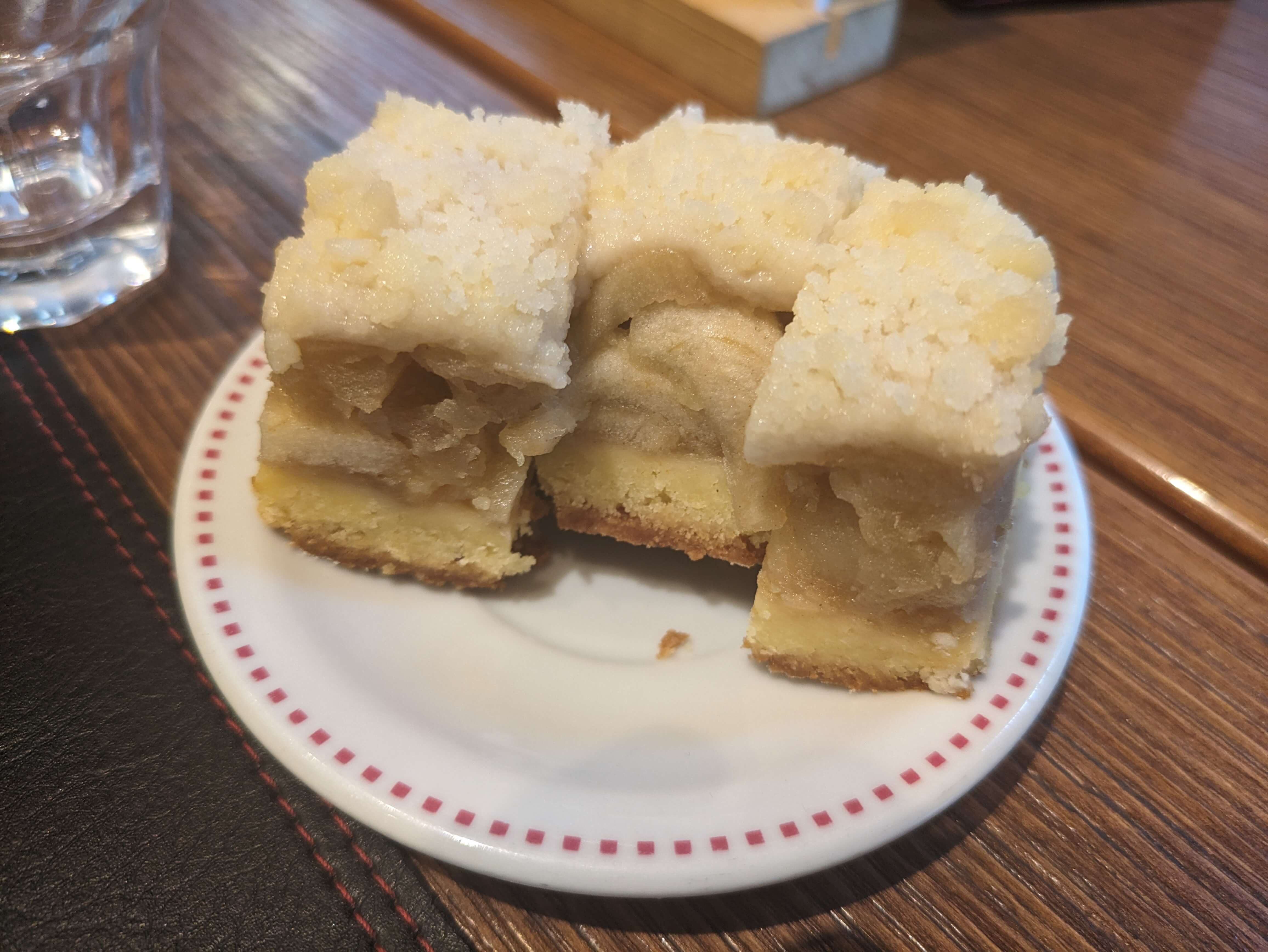 店内はヨーロッパにありそうな喫茶店といった感じで、アップルパイ的なものと、コーヒーで 1,500 円程度でした。