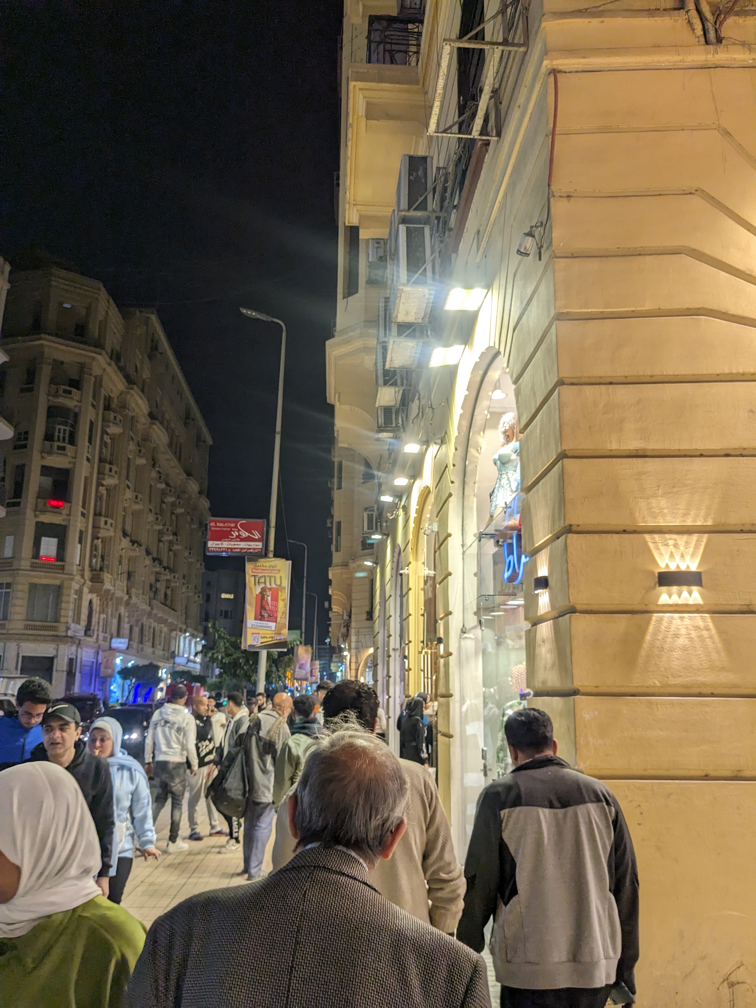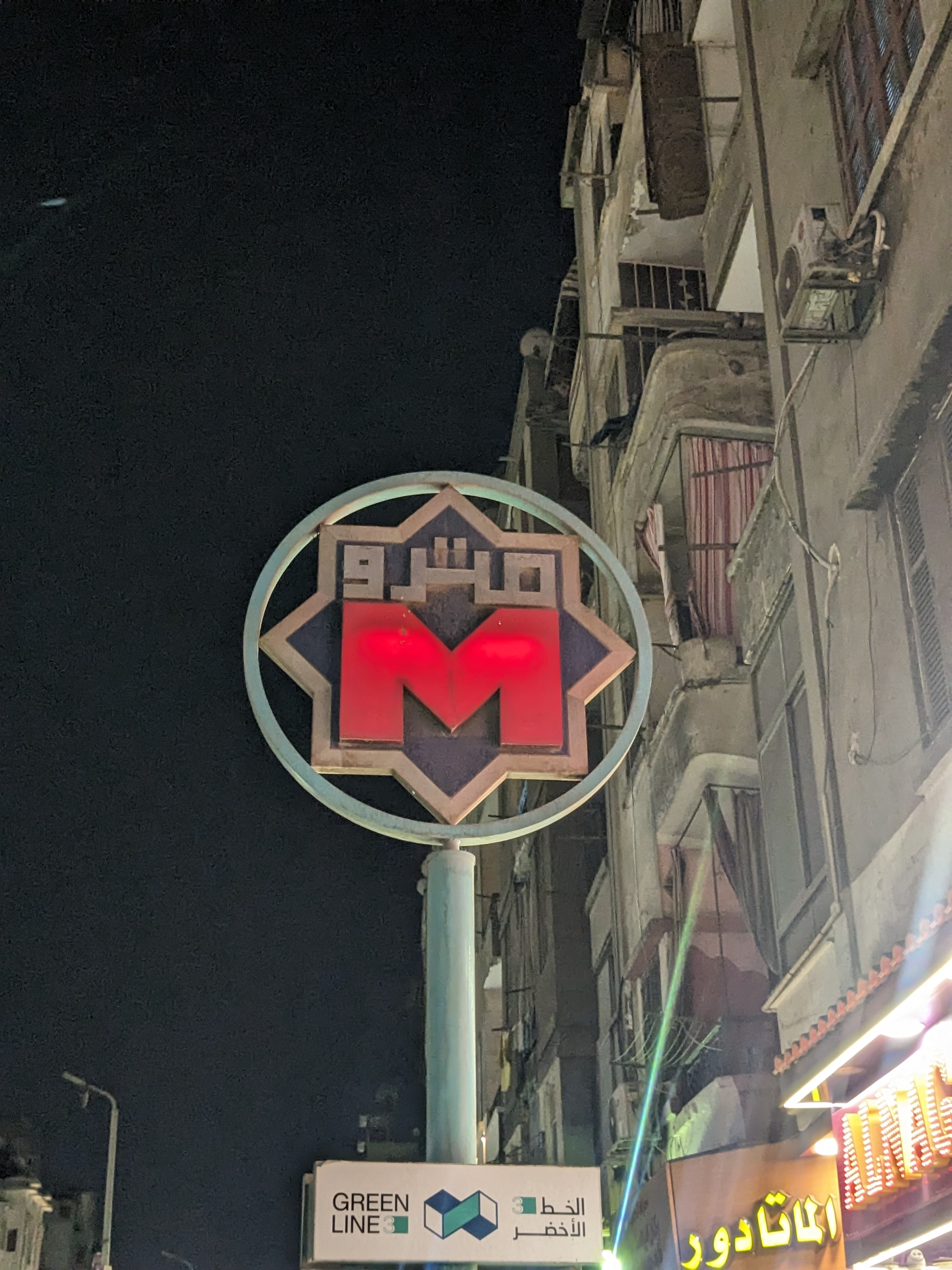 まだ夜のカイロを歩いてみたかったのと、メトロに乗ってみたかったため、Bab El-Shaaria 駅まで 1.5km 歩き、一駅だけメトロに乗ることにしました。
