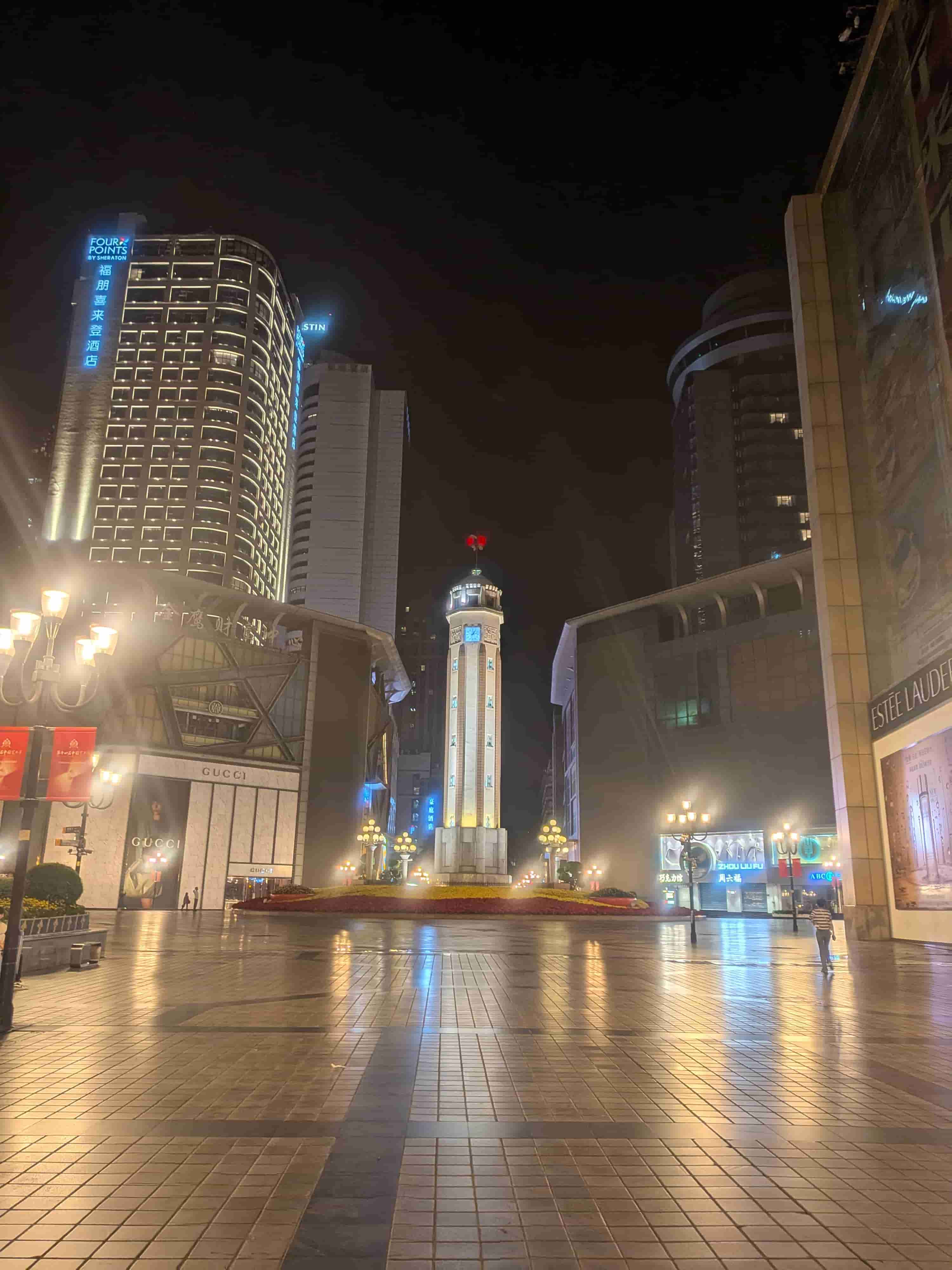 40 分ほど乗り、終着駅の解放碑に着きました。 この時点で 1 時を過ぎており、一部のコンビニを除いて流石に真っ暗です。