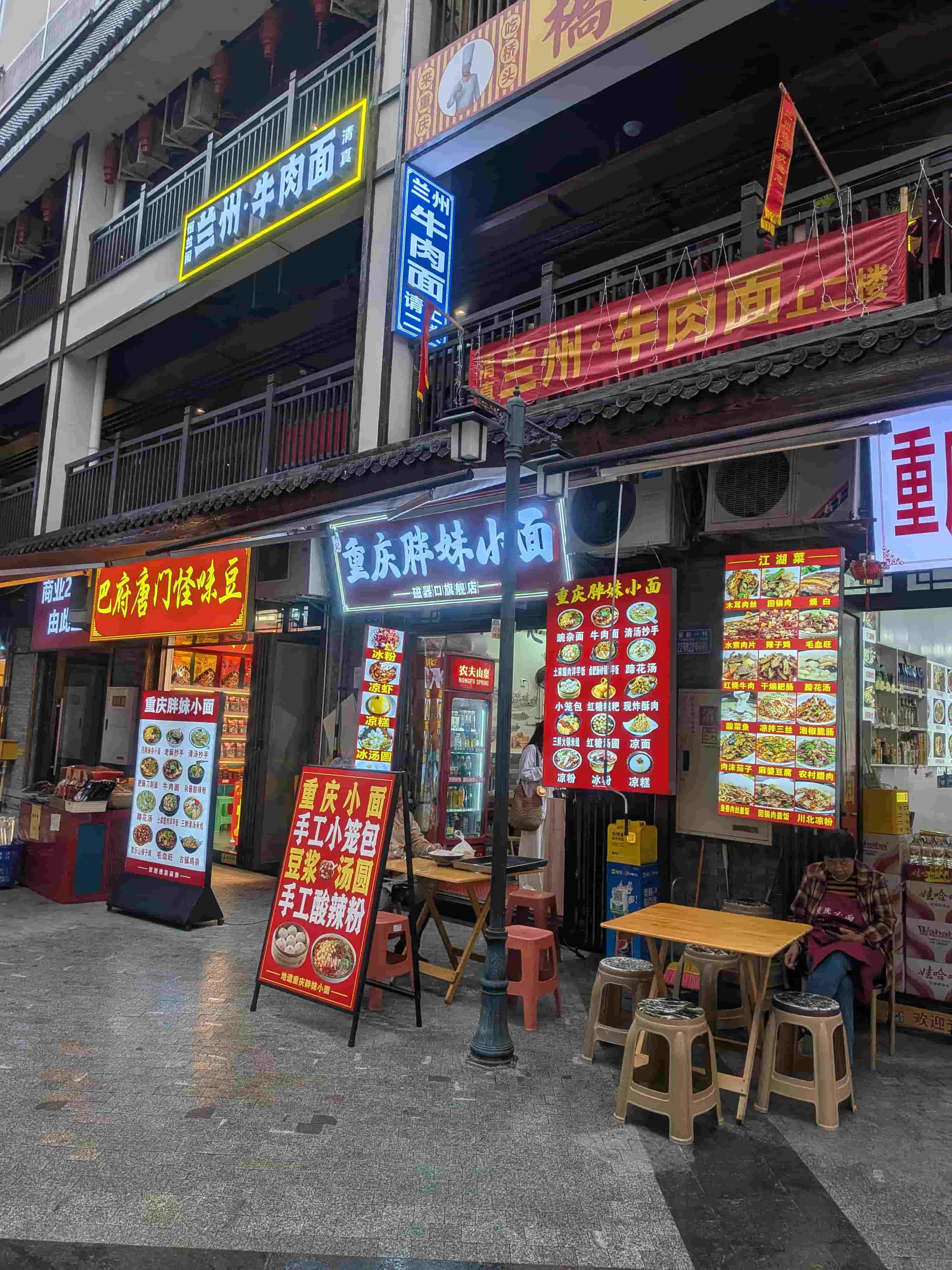 場所が少し分かりずらいですが、解放碑を洪崖洞から見て反対側へ行ったエリアに、重慶料理のお店がたくさん並んでいるエリアがあります。