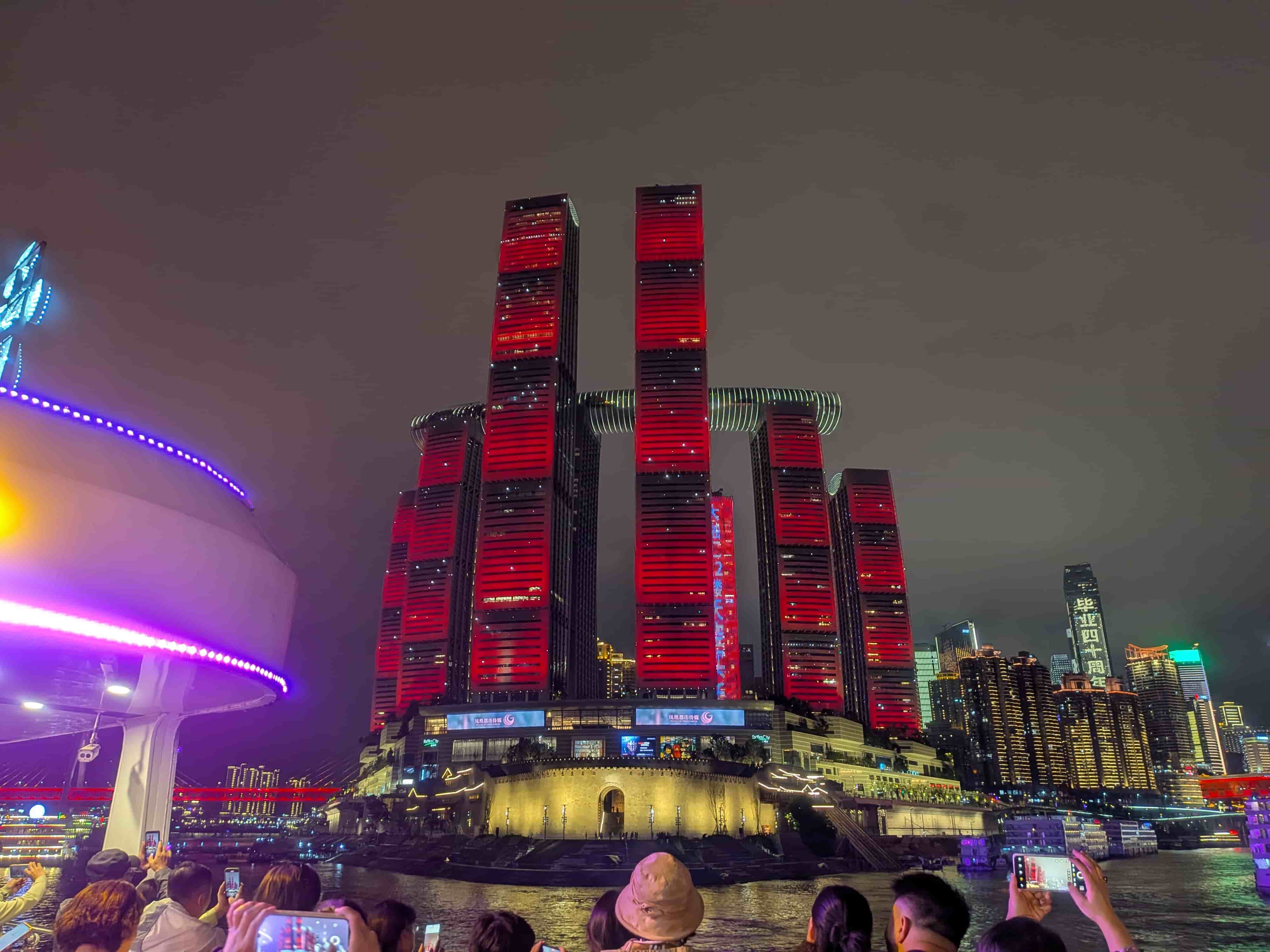 また洪崖洞も、やはり遠くから見ると全体のサイズ感が分かり、船ならではでしたね。