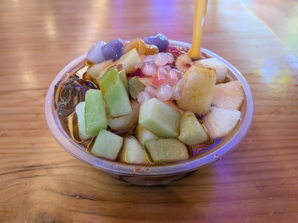 凉粉は四川名物のスイーツで、ゼリー的なスイーツです。黒蜜がとても美味しかったです。