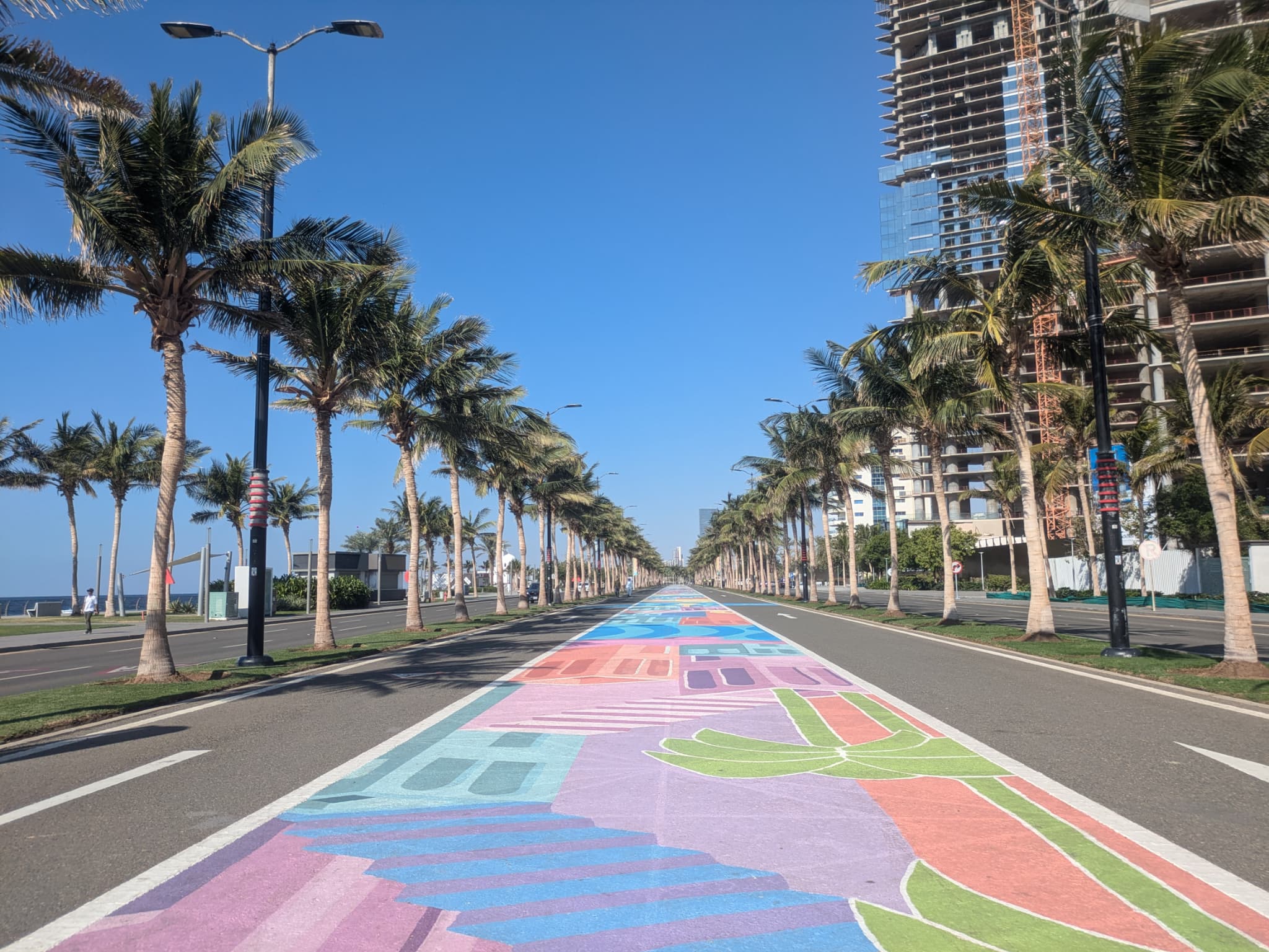 この海岸線沿いはプロムナードになっているので、車のいない道を安全に歩けます。