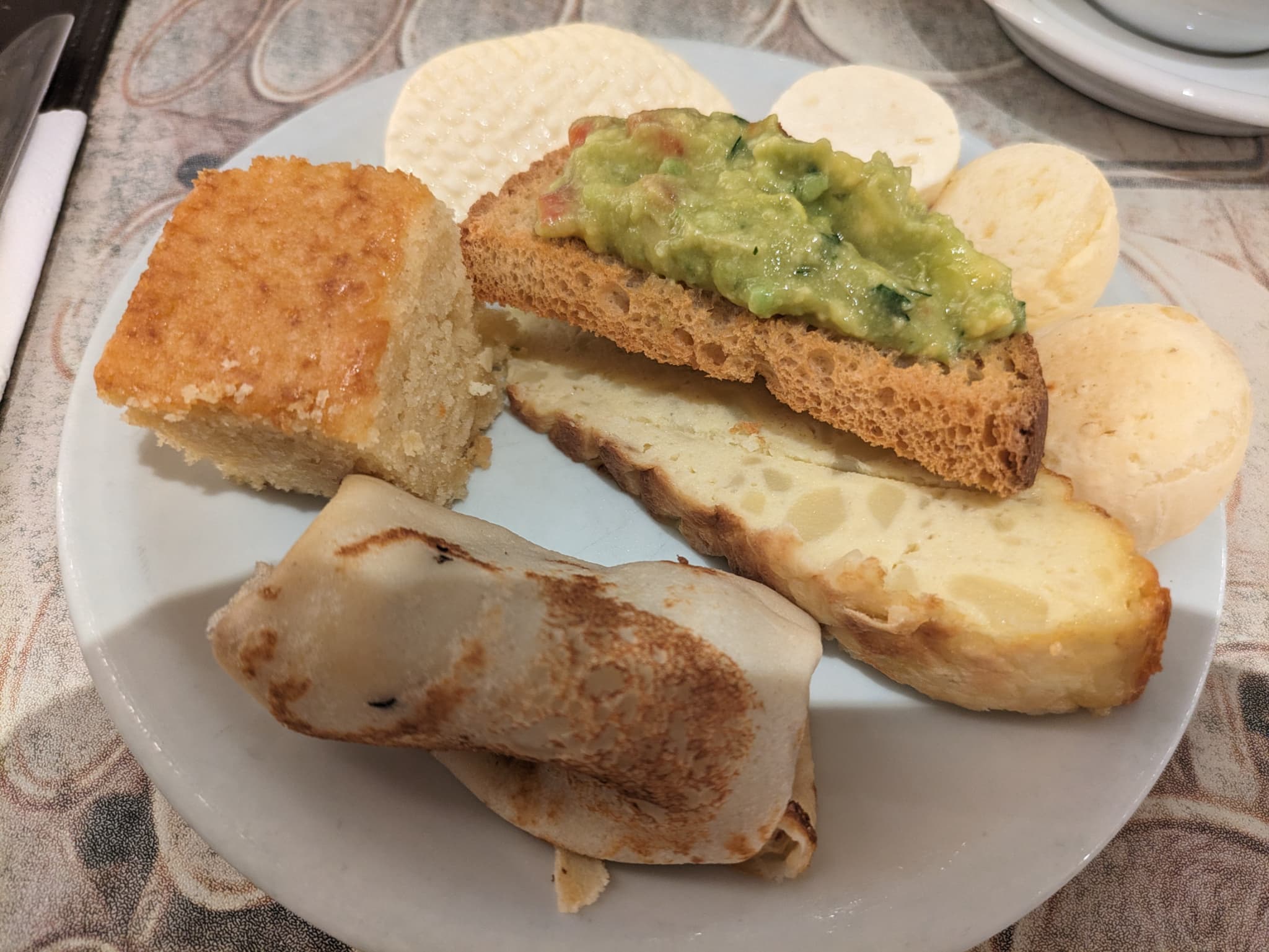 ファロファ(Farofa)というキャッサバ粉でできたフレークと、バナナコロッケが添えてありました。