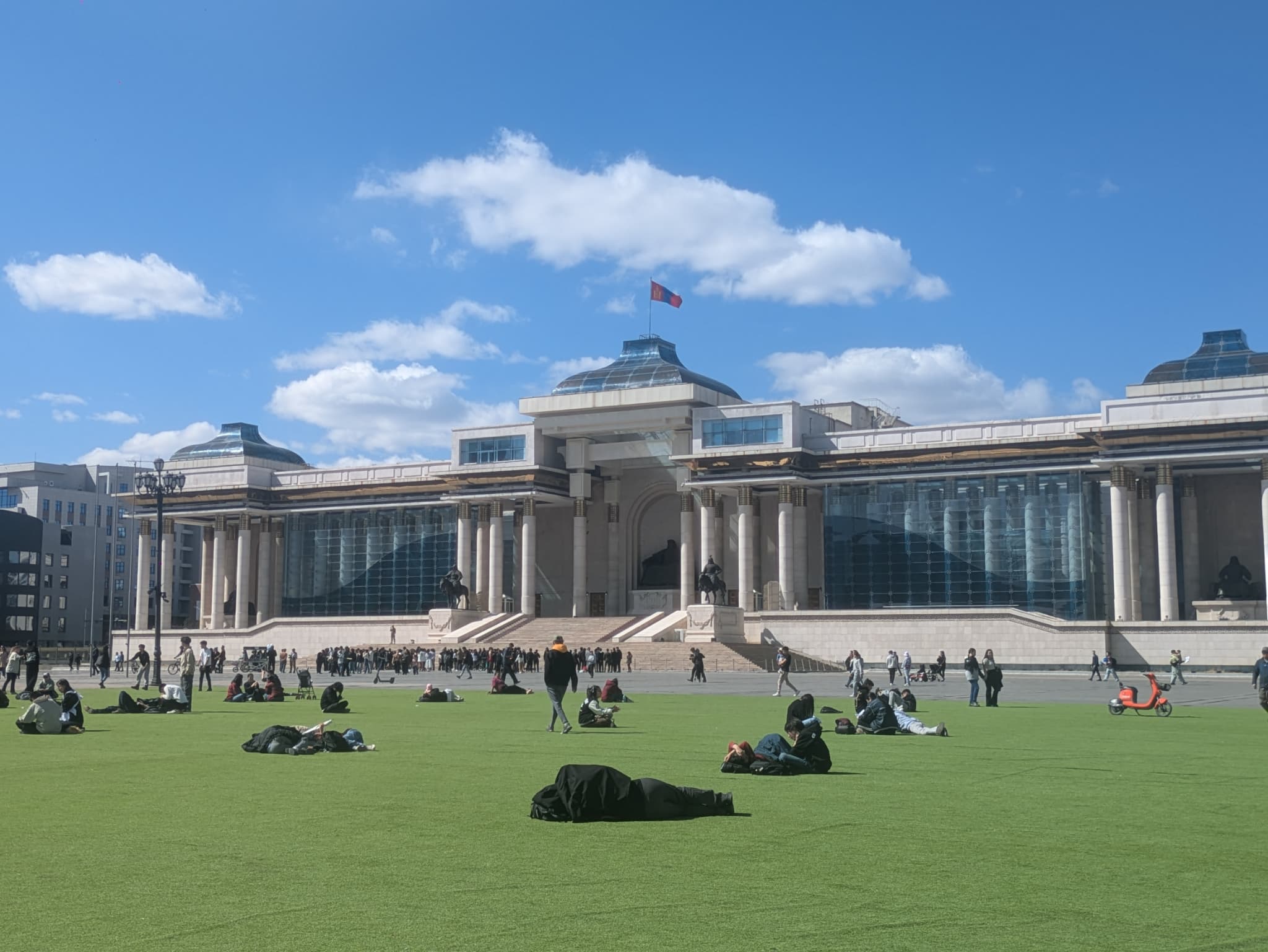 北側にモンゴル政府庁舎、東側に国立オペラ、そして中央にはスフバートル像があり、モンゴルの主要なモニュメントが揃っています。